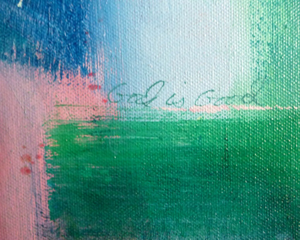 “Praise” is a 24″x30″ abstract painting that I created in acrylics with a contemporary Christian theme. I wanted to portray how giving God praise feels through bright colors and bold brush strokes. To add a bit of interest, I have hidden “God is good” multiple times within the painting.